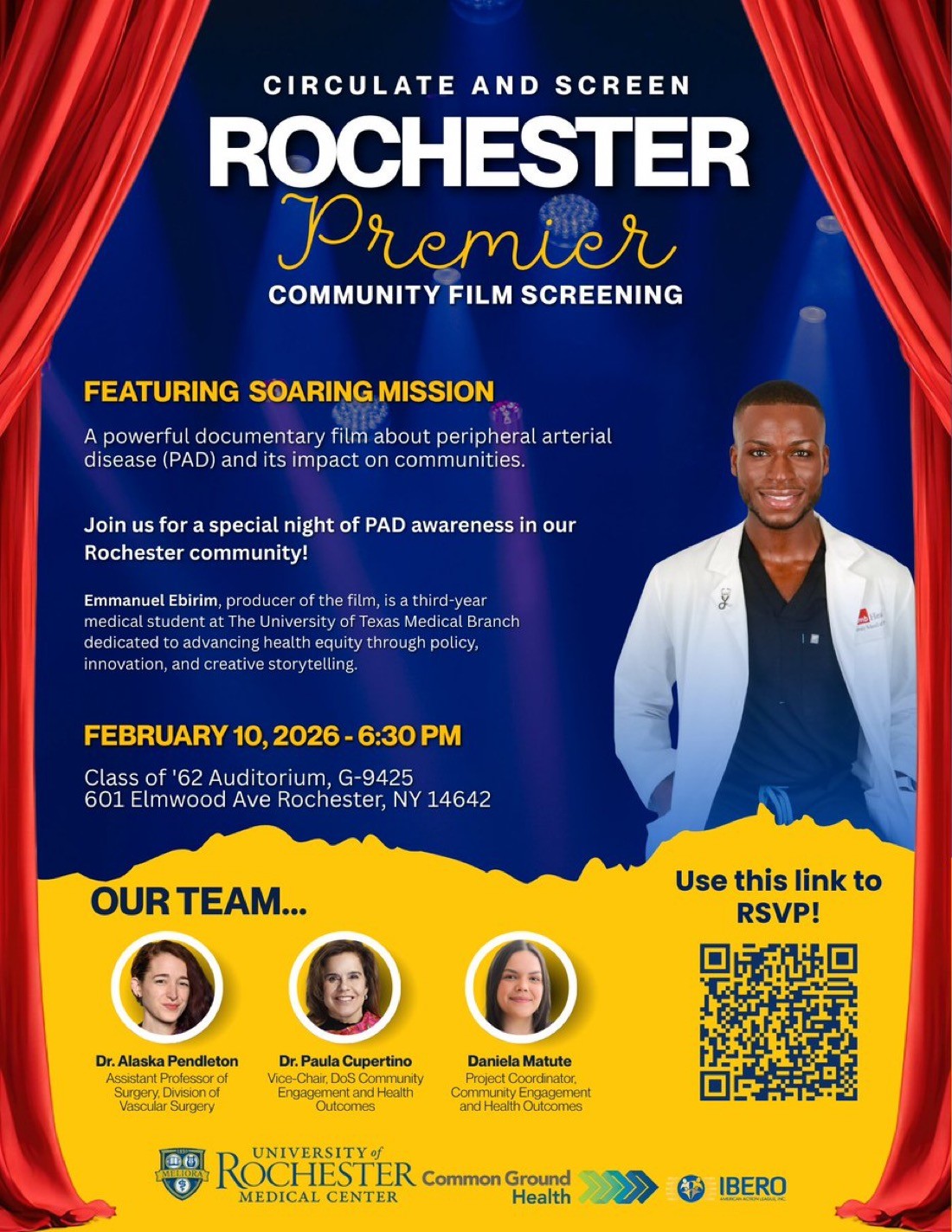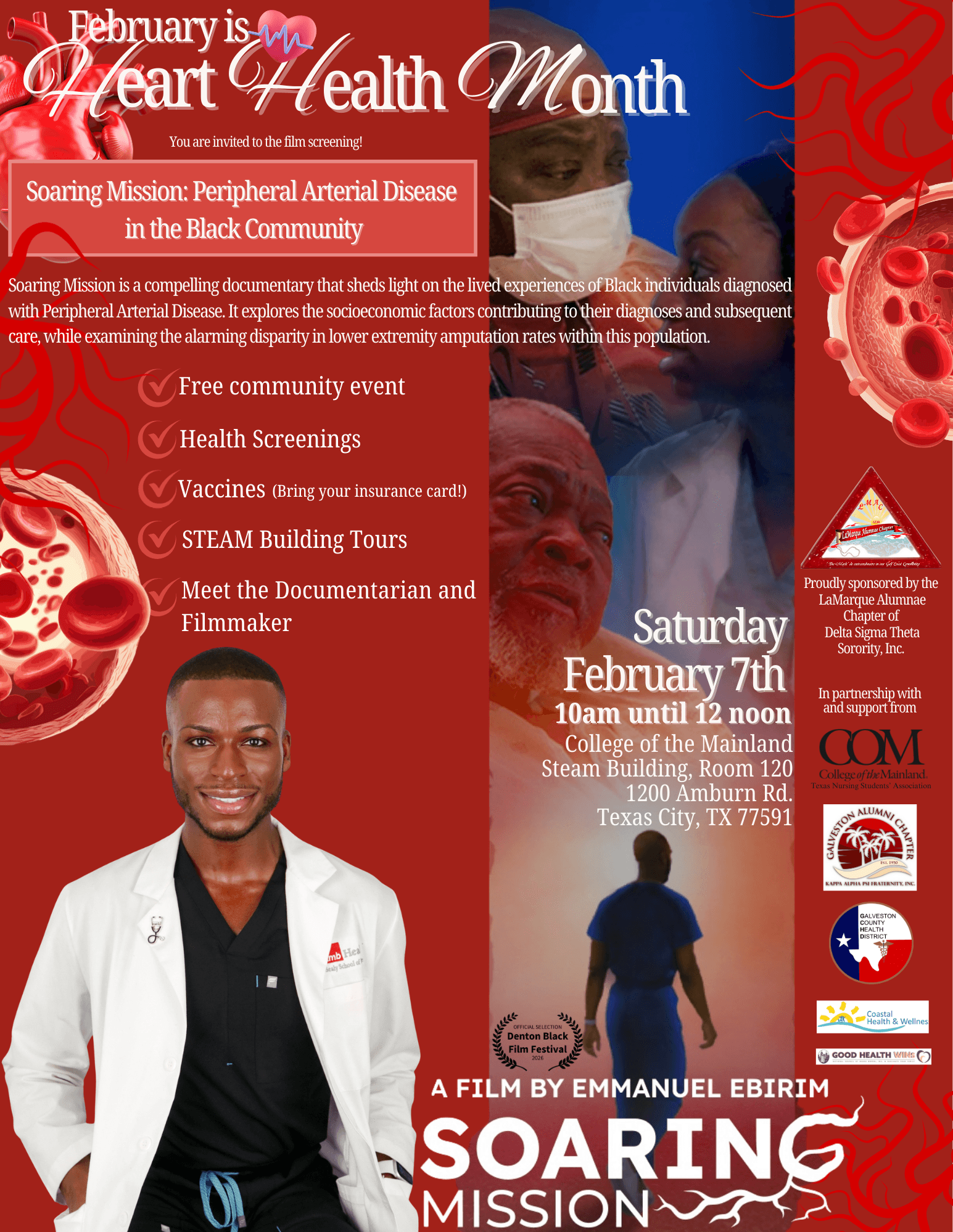 Soaring Mission is a compelling documentary that sheds light on the lived experiences of Black individuals diagnosed with PAD. It explores the socioeconomic factors contributing to their diagnoses and subsequent care while examining the alarming disparity in lower extremity amputation rates within this population. Featuring the voices of diverse patients, the film captures PAD’s progression, surgical interventions, and life after amputation, offering an intimate and humanized perspective on the challenges these patients face.
